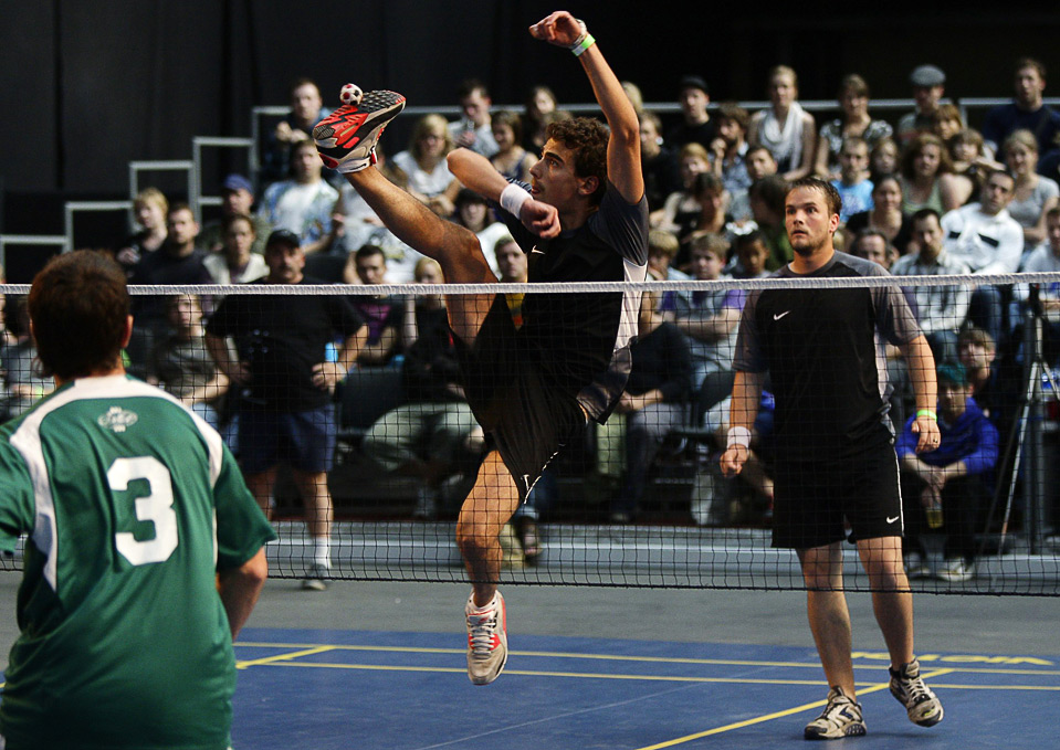 - Singles net (síť jednotlivci) – jeden hráč na každé straně hřiště (o rozměrech cca 13,5 x 6 m); hráči kopou míček přes síť (výška 150 cm) takovým způsobem, aby jej umístili do hrací plochy protihráče a zároveň nedopadl na jejich vlastní polovině na zem
